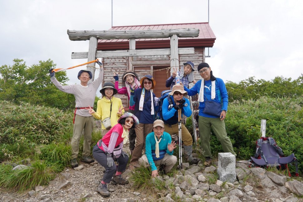| | 岩手山・田代岳・八幡平実施日:令和5年7月8~9日(日)二泊三日など 参加者:24名(男性10名、女性14名)※一般参加者2名 リーダー:水谷彰仁、サブリーダー:望月 亮 記録:MとW 今回の東北地方の山行は、岩手山・田代岳・八幡平を中心にして、参加者ひとり一人の 都合や体力に合わせて、山登りコースや日程を選ぶことができる二泊三日の山行でした。 宿泊地は安比高原にある貸別荘施設でした。静岡マウンテンクラブの会員が契約して施設 の部屋を借りることができました。基本的には、21日から23日まで計画で、22日に は岩手山と田代岳から選択し、23日は全員で八幡平に歩く計画でした。しかし、早くか ら安比に来て、事前に早池峰山に登ったり、24日に秋田駒ケ岳に登るメンバーたちもい ました。 ≪22日≫ 【田代岳】男性7名、女性3名計10名 白神山地の東端、青森県との県境近くに位置する。西に雷岳、烏帽子岳、茶臼岳を連ね る山塊の主峰である 昭和50年に県立自然公園に指定された。鳥海火山帯に属するトロイデ型火山で、山頂直 下の標高1100m付近には、大小120ほどの池塘散在する大湿原が横たわっている。(「山と渓谷社オンライン」より) 6:00 安比高原を車2台で出発する。 8:50 今回は「荒沢コース」から登る。駐車場に1台しか車がなかった。大広手口に は何台か車が置いてあり、そちらから登る人がおおいのか。先週あたりか?秋田県で豪雨 があり、大きな被害が出ている。登山道は崩れてはいないが堆積物があるなど登山道は歩 きにくかった。出だしすぐで沢コースと稜線コースと分かれていると言われていたが、そ の分岐点が分からず、滑りやすい沢コースを歩く。途中からブナの巨木がたくさんあり、 深い森という感じであった。静岡県の山とは全然風景が違う。五合目付近から、登山道が 大きな石がゴロゴロしており、歩きにくった。 11:30 やっと9丁目の池塘のある大湿原に到着する。風景がまったく違った。木道 を水生植物を観ながら歩く。 11:45 山頂到着。晴れていて遠くの山々まで観ることができた。 12:15 山頂を出発する。下りはあまり休まず慎重に下る。登りでは分からなかった 稜線コースを歩く。 14:44 荒沢口に戻ってくる。